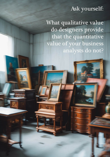 In order to break this cycle it requires business leaders to think differently about the ROI of a design team. What qualitative value do designers provide that the quantitative value of your business analysts do not?